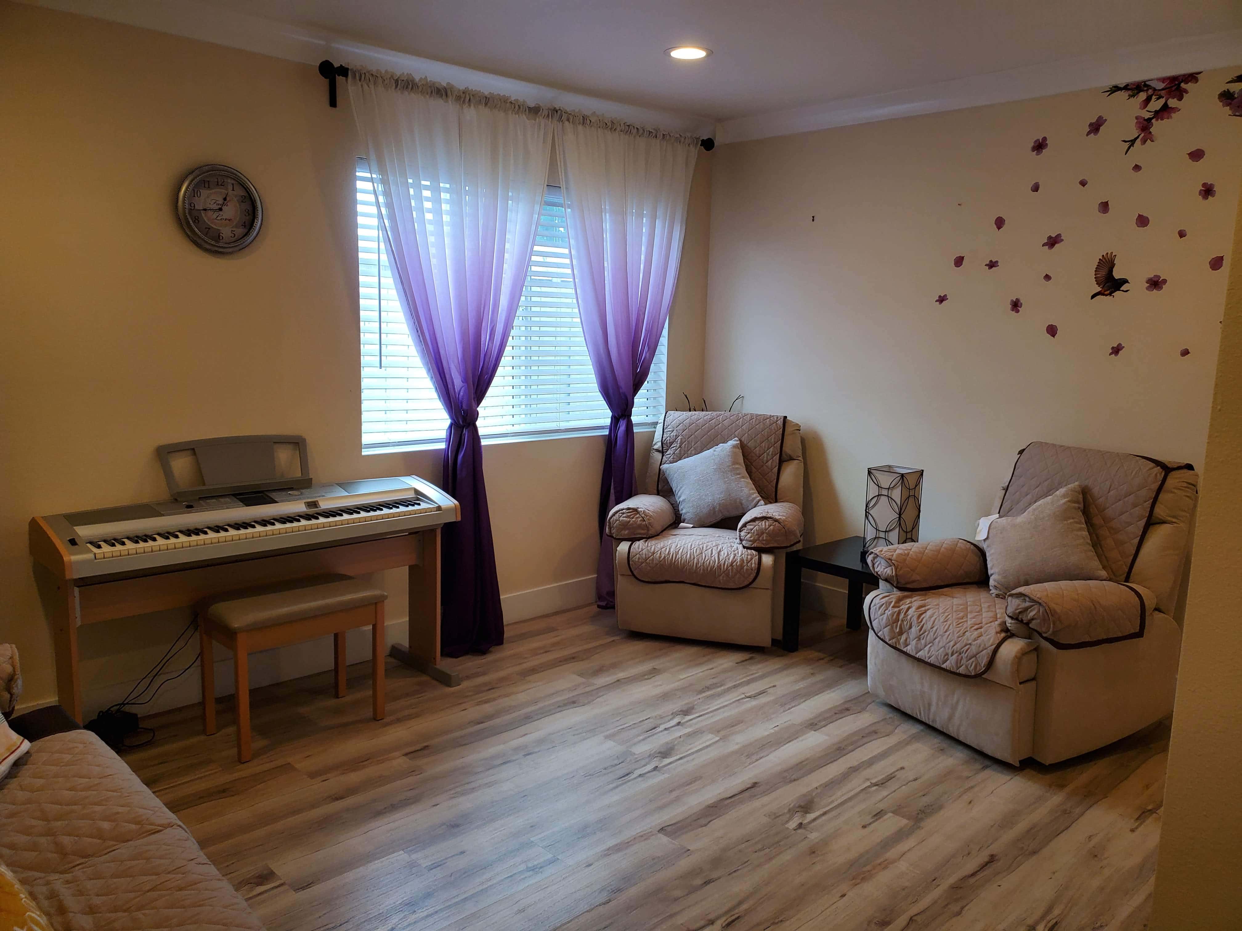 Located within a quiet, clean, and friendly neighborhood, with multiple rooms - from spacious solo to common areas, we have a unique layout that is sure to make you or your loved one feel at home. Sumner Board and Care care home experience removes the hardships faced when living on your own. Our license allows us to care for no more than six beloved residents at once that we help care for and support.